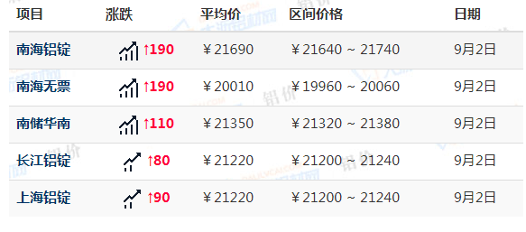 9月2日各地鋁價(jià)詳細(xì)為下圖: